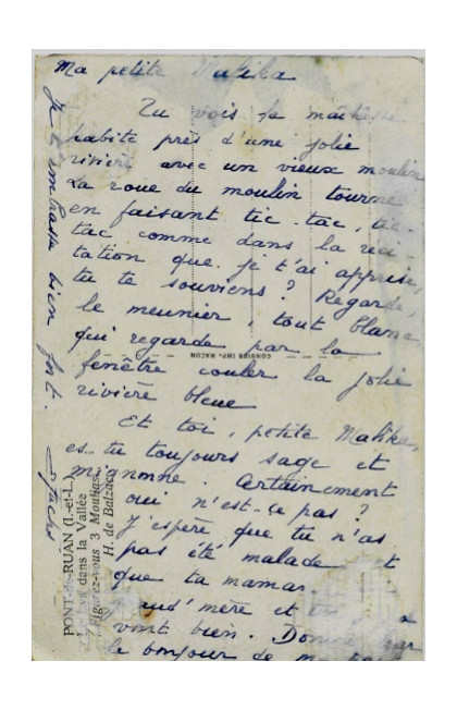 Décembre À Lyon, le 21 septembre 2018, lors d’une rencontre organisée par Fathia Toumi à la bibliothèque du 1er arrondissement, autour du livre collectif À l’école en Algérie, des années 30 à l’Indépendance (éd. Bleu autour) dirigé par Martine Mathieu-Job, j’ai retrouvé une condisciple du lycée de Blida, Malika Amzert. Je n’avais oublié ni sa voix ni sa beauté. Malika m’envoie un texte sur ses années d’école. Le voici, avec un document précieux, une carte postale de son institutrice, Mademoiselle Fuchs, que Malika a reçue, des années plus tard. À Bou-Haroun 1948 J’avais 7 ans depuis peu. J’étais encore enfant unique. Quelque chose se tramait qui allait bousculer mon destin de fille de pêcheur, pauvre, indigène de surcroît. C’est ce que laissaient entendre mes parents. Mon père affirmait même que j’étais née sous une bonne étoile, pour avoir cette chance : apprendre à lire et à écrire. Je ne sais plus comment j’ai pris la chose. Je m’ennuyais beaucoup ; une nouveauté dans la monotonie de l’ordinaire des jours n’a pu que me ravir. Je suis arrivée au C.P. quelques jours après la rentrée des classes, le temps, pour Mademoiselle Fuchs institutrice et directrice d’école, de s’assurer de la vacance d’une place que je puisse occuper. Ma grand-mère travaillait à son service. Elle savait tout faire, ne mesurait jamais sa peine. De plus, elle parlait parfaitement le vrai français, celui des aristocrates de Haute-Loire, les Dufaure de Citres, chez lesquels elle avait été placée depuis l’âge de 7 ans, alors que ses congénères n’entendaient rien à cette langue et que les pieds-noirs de l’endroit s’exprimaient en pataouète, une sorte de français métis et cabossé. Selon ma grand-mère, c’est ce qui a séduit et attendri, celle dont on disait qu’elle était vieille fille ; qui l’a rendue sensible à sa requête : me faire une place dans son école. Dans Le Fils du pauvre, Mouloud Feraoun écrit : « Je me souviens comme si cela datait d’hier, de mon entrée à l’école. » J’ai beau fouiller dans mes souvenirs, je ne peux pas en dire autant. Ce dont je peux témoigner, c’est d’un climat, celui de l’ordre et du silence. D’un conditionnement quasi religieux au respect d’une discipline, sans l’observation de laquelle rien de ce qui nous était promis ne pourrait advenir. C’est en rangs et bouches cousues que nous pénétrions dans le sanctuaire, regagnions nos places sans rompre le silence, sauf au moment où nous serions interrogés. Durant l’été suivant cette première année scolaire, le facteur m’a remis un courrier venant de la « Métropole ». C’est Mademoiselle Fuchs qui m’envoyait une carte postale du lieu où elle séjournait en vacances. L’image représente un moulin au bord d’une rivière. Il y est précisé qu’elle a été prise dans le village de Pont-de-Ruan, traversé par l’Indre. Sur le moment tous ces détails m’ont échappé. De même que m’avait échappé qu’il s’agissait de la localité célébrée par Le Lys dans la vallée, d’Honoré de Balzac. Dans le petit texte qu’elle a écrit au verso de la carte, elle manifeste l’affection qu’elle a pour moi, son souci de pédagogue et son respect pour ma famille, qu’elle me charge de saluer comme s’il s’agissait d’amis. Durant l’année j’avais appris à l’aimer pour tout ce qu’elle m’apportait de découvertes, de plaisir, de satisfaction et de réconfort. Sa missive était la preuve de la réciproque. Un tendre lien d’estime s’était noué entre nous. Elle m’en a donné confirmation plus de dix ans après. Peu de temps avant l’Indépendance, alors que j’étais élève fonctionnaire à l’École Normale d’institutrices d’El-Biar, elle m’a rendu visite. Elle m’a offert un ballotin de pruneaux fourrés à la pâte d’amandes. Elle était retraitée. Elle repartait vivre définitivement en Indre-et-Loire, à Pont-de-Ruan son pays natal, où je lui souhaitais de couler des jours tranquilles dans la douceur angevine. Malika Amzert (Lyon, 2018)